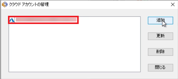・クラウド アカウントの管理画面が表示されます。[追加] をクリックします。