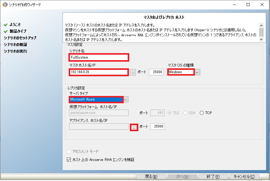 仮想マシン名の指定については注意事項がありますので、仮想サーバ環境操作のオンライン ヘルプ「フルシステム Azure シナリオでの追加プロパティの設定」をご参照ください。