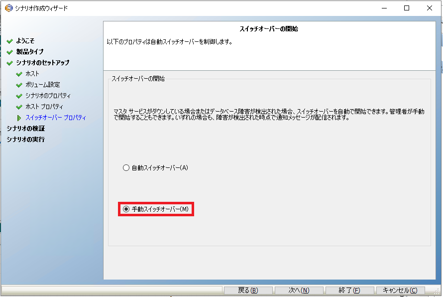 手動スイッチオーバーを選択し、[次へ] をクリックします。