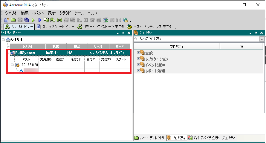 ・Arcserve RHA マネージャ画面で、シナリオが作成されていることを確認します。
