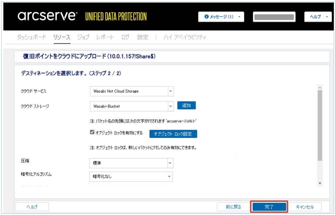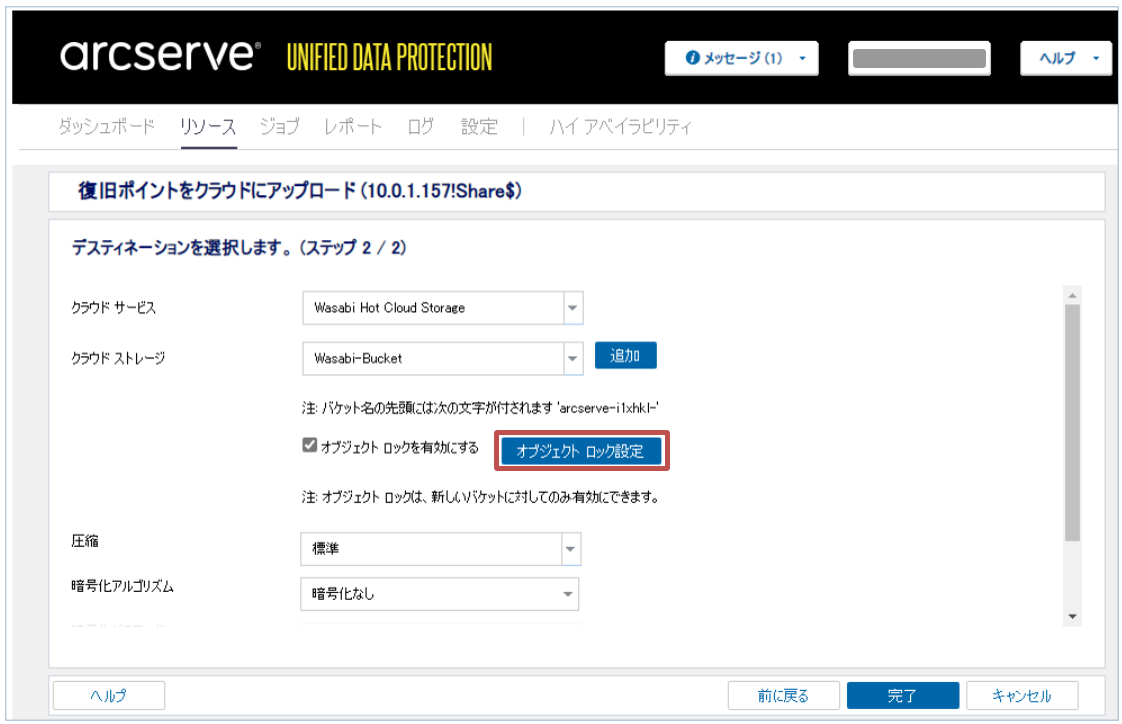 通常のWasabiに保存された復旧ポイントを、オブジェクトロックが有効化されたWasabiにアップロードする方法について記載します。