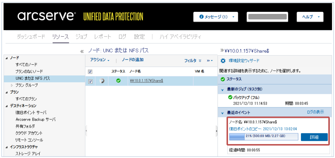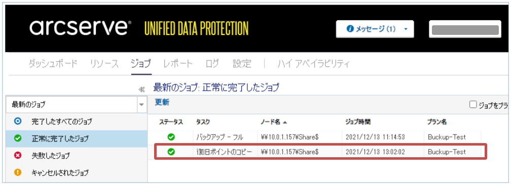- 「ジョブ」内の「正常に完了したジョブ」で、復旧ポイントのコピーが正常に完了していることを確認します。
