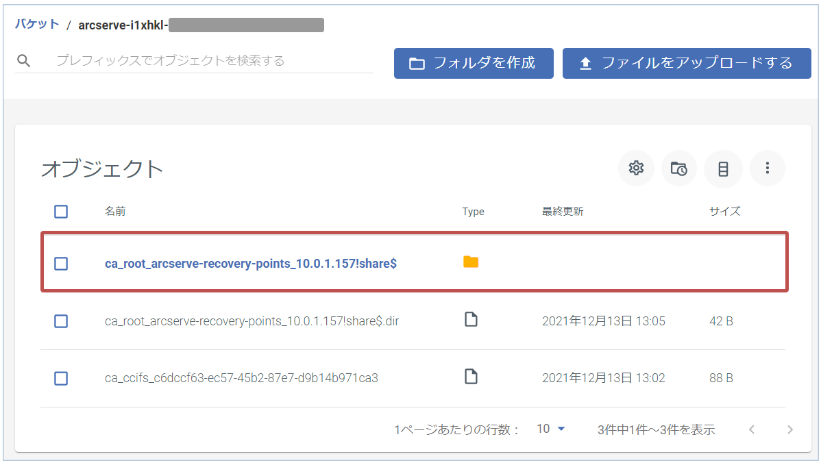 - Wasabi画面にて、バケットに復旧ポイントがコピーされていることを確認します。※バケット名に、手順3の画面内の文字列を含みます。