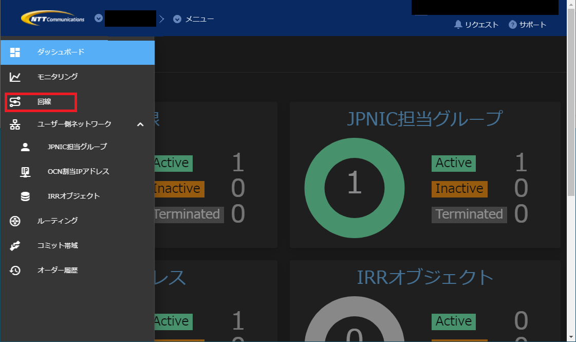 - 左ペインより[回線]をクリックします。