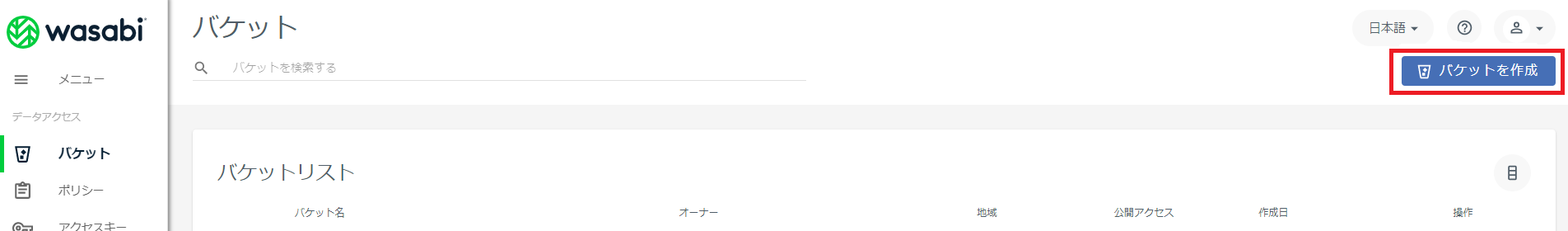 2.1.3.1. Wasabiバケットを作成する¶