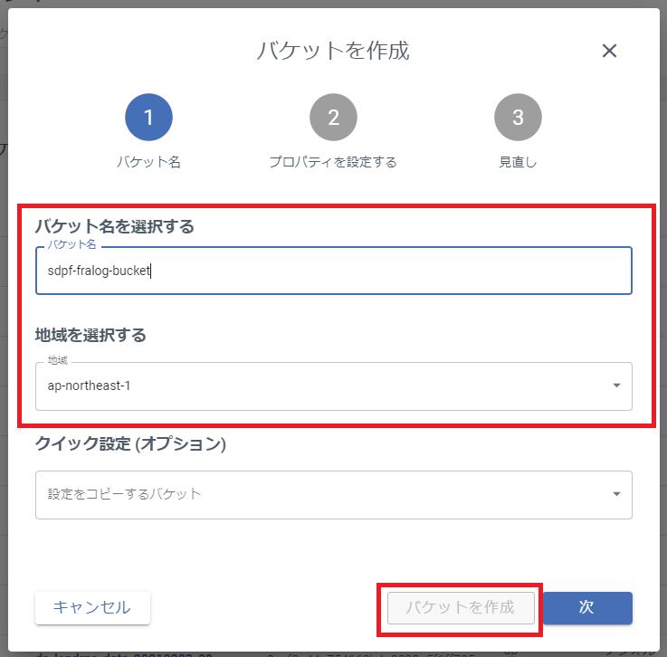 - バケット名: sdpf-fralog-bucket
