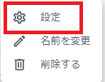 - バケット名の右の操作をクリックし、メニューから[設定]をクリックします。