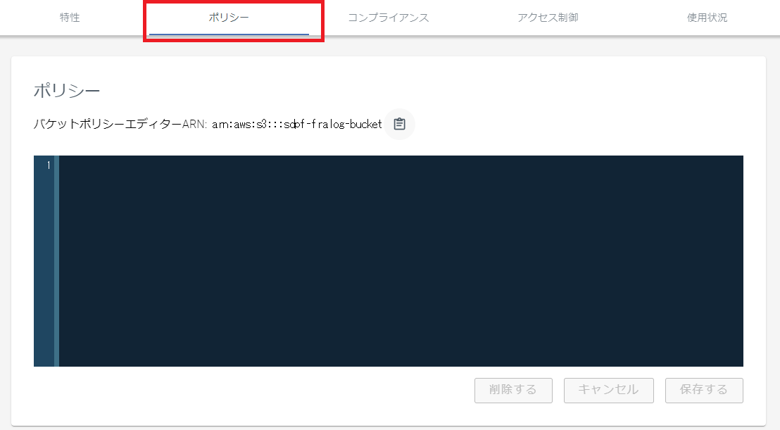 - バケットの設定で[ポリシー]をクリックします。