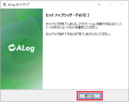 ダウンロードした「alog.zip」を解凍し、「setup.exe」を実行します。