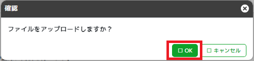 「ファイルをアップロードしますか?」の画面で「OK」をクリックします。