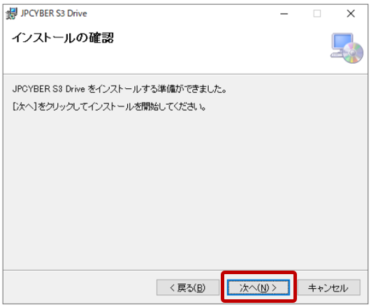 - ダウンロードした「JPCYBERS3Drive.msi」を実行します。