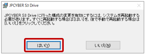 - システムの再起動確認「はい」をクリックし、システムを再起動します。