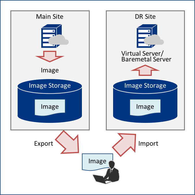災害発生時までは、DRサイトは必要最小限のサーバーを起動し、他はテンプレートなどの形で保持する。