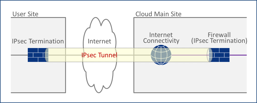 VPNが接続されないような小規模なオフィスに対して、インターネットVPN(IPsec)を用いて、クラウド環境/VPN内へ接続する。
