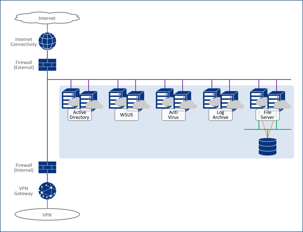 オフィス環境で利用するサーバーをクラウドサービスへ集約します。具体的には、以下のようなサーバーを配置することを想定しています。