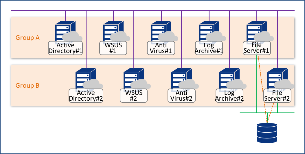 企業内のクライアントPCに対して定義ファイルを配信するためのウイルス対策管理サーバーなどについては、サービスが停止しても即時に業務が停止しない用途のサーバーについては、RTO(Recovery Time Objective、目標復旧時間)に多少の余裕があることがあり、ホットスタンバイ構成は不要です。