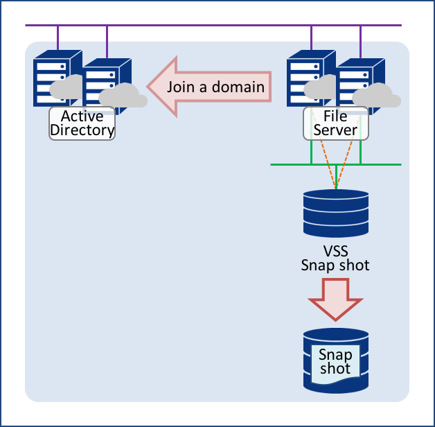 冗長化されたファイルサーバーは、ブロックストレージが提供するボリュームを共有ディスクとしてiSCSIマウントすることで冗長構成をとることができます。これにより、サーバーのメンテナンスの際にもサービスの停止時間を最小化することができます。パフォーマンスについては、2IOPS/GBまたは4IOPS/GBの性能で、ファイルサーバーを構成できます。容量についても、使用状況によりボリュームを追加することができます。必要な容量を必要なタイミングで利用することで、コストの最小化を図れます。