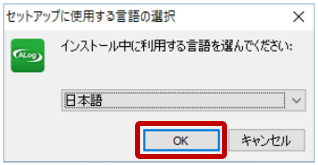 「セットアップに使用する言語の選択」で[日本語]を選択し、[OK]をクリックします。