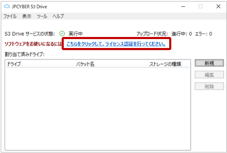 - デスクトップの「JPCYBER S3 Drive」アイコンをダブルクリックし、JPCYBER S3 Driveの設定画面を起動します。