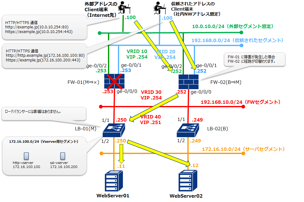 FW障害発生時でも経路が切り替わり、問題なく通信が可能なことを確認するため外部セグメントClient端末からHTTP通信・HTTPS通信を行います。