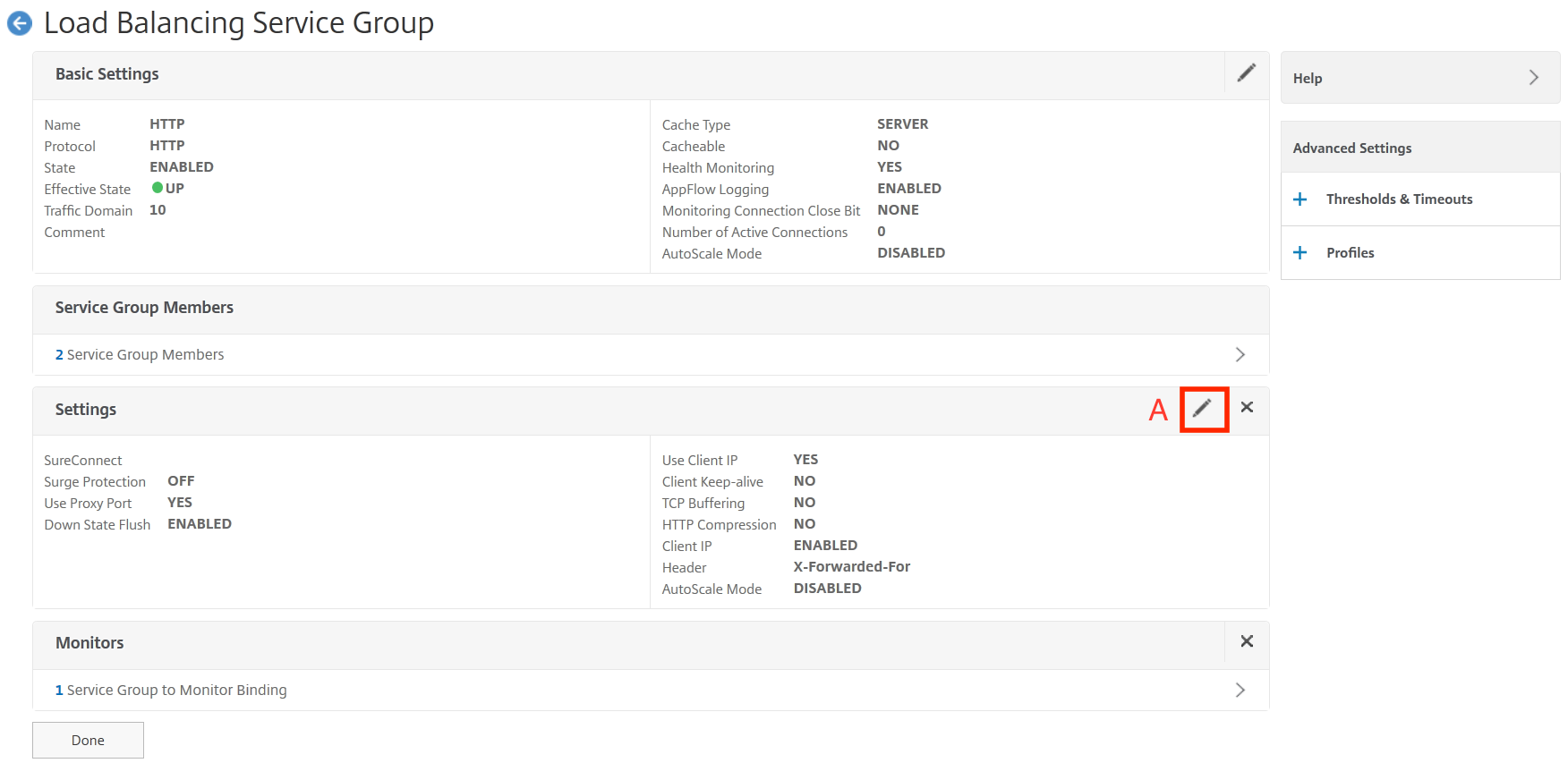 メニュー[Traffic Management]-[Load Balancing]-[Virtual Servers]へと進み、右メニューに表示された登録済みのサービスグループ名[ssl-vserver]をダブルクリックし、設定を確認します。