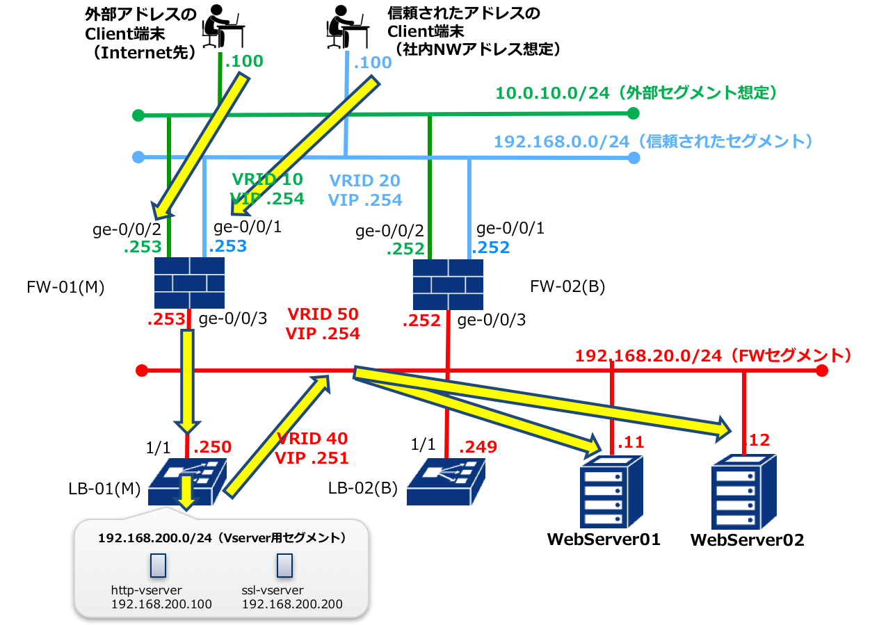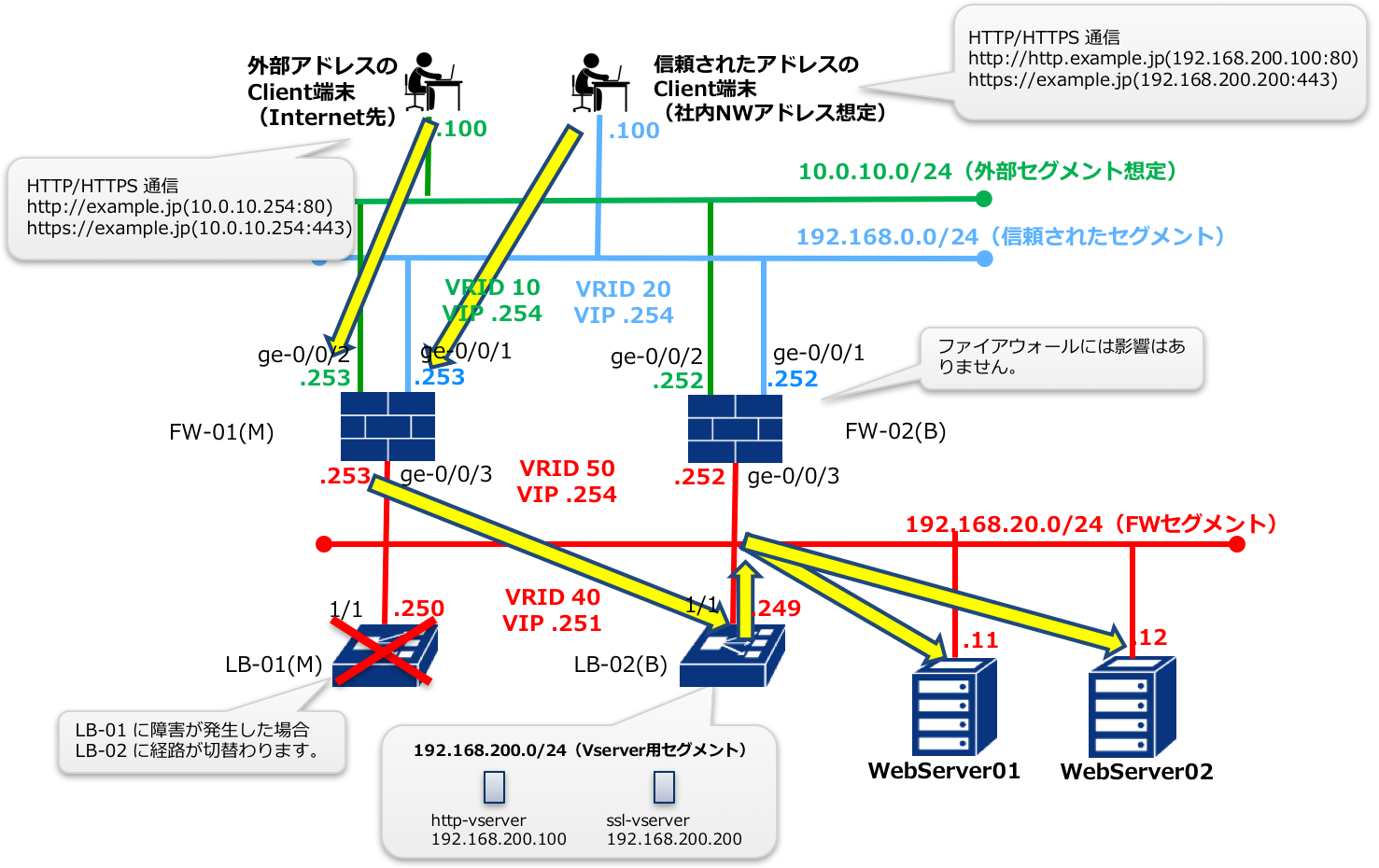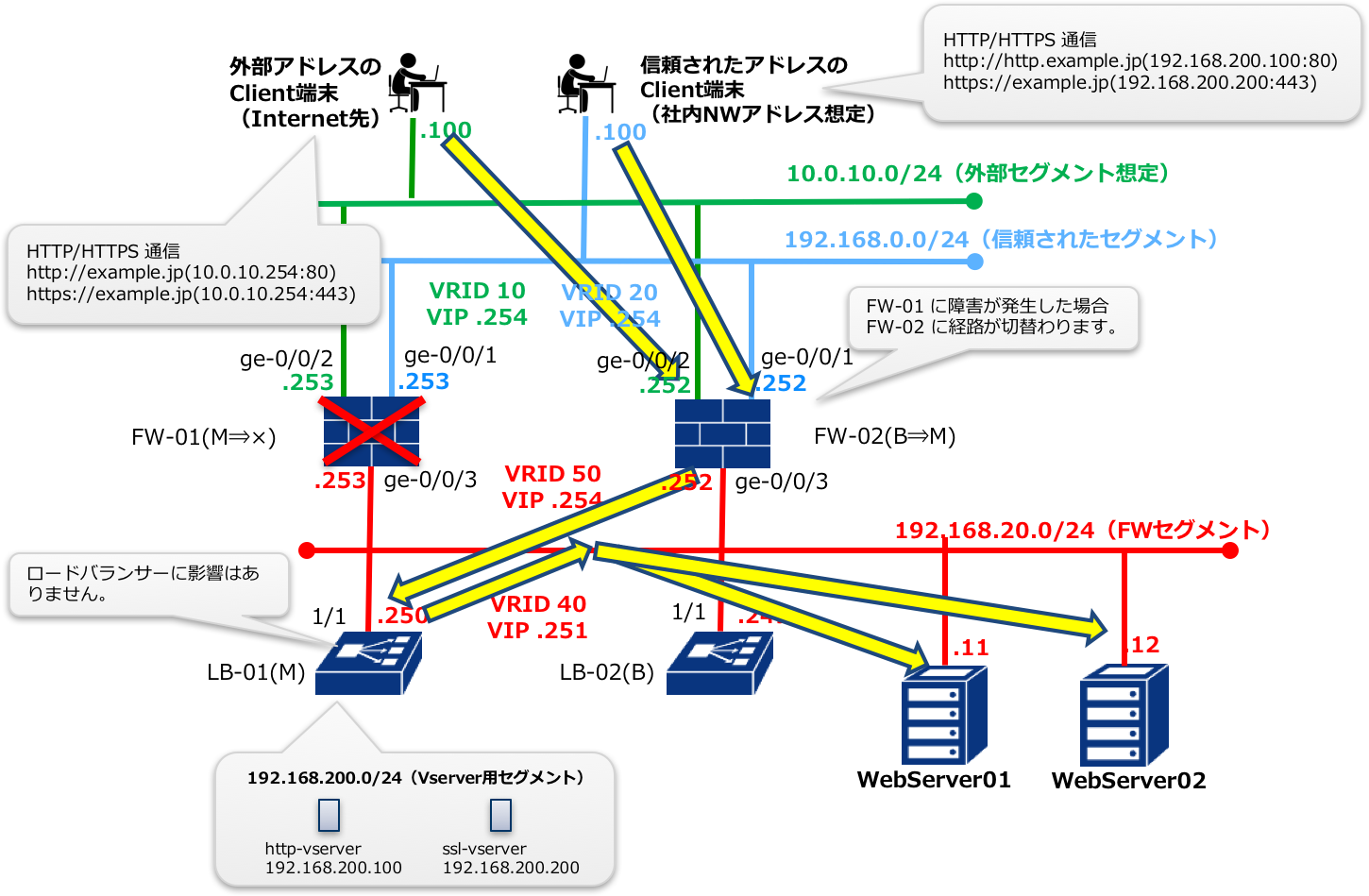 WebサーバーのデフォルトゲートウェイはLBのInterfce 1/2側のVIPとしてください。SDPFでは通信が往復で同じ経路を通る構成としてください。
