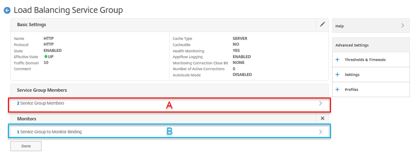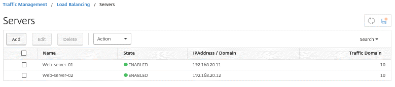 メニューの[Traffic Management]―[Load Balancing]―[Virtual Servers]を選択し、右メニューに表示された登録済みのサービスグループ名[http-vserver]をダブルクリックし、設定を確認します。