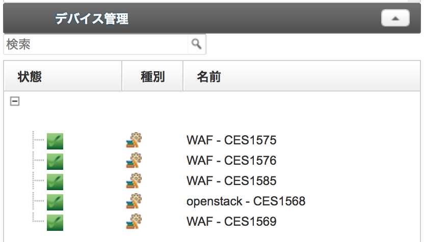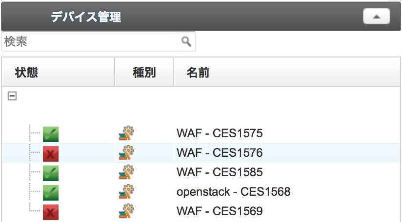 Managed WAFの状態はデバイス管理画面から確認できます。 障害発生時は状態が黄色、または赤色で表示されます。