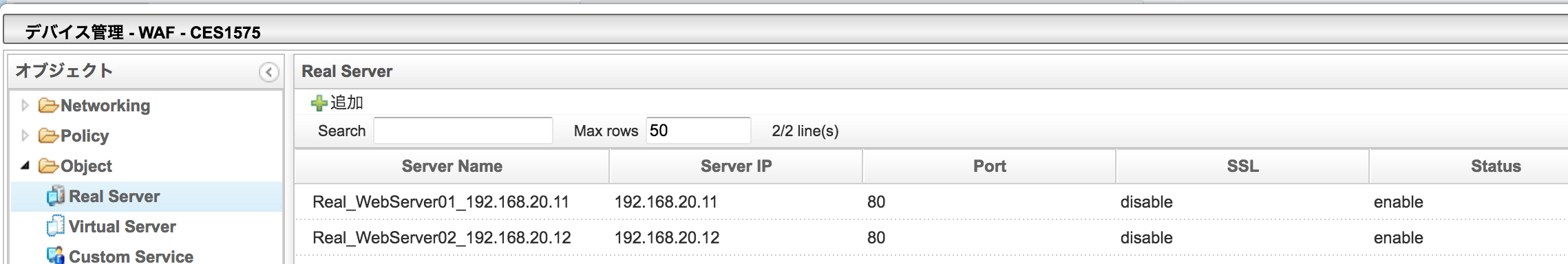 「Managed WAF Operation」-[デバイス管理]を選択し、デバイスの状態を確認します。