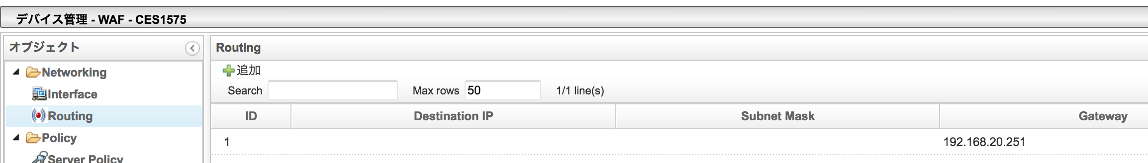 ファイアウォールインターフェイス設定