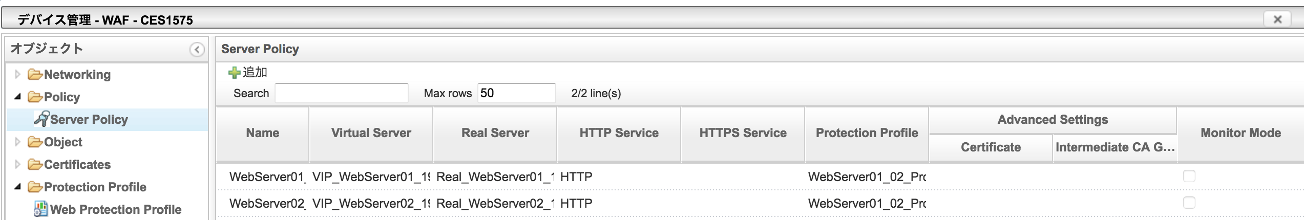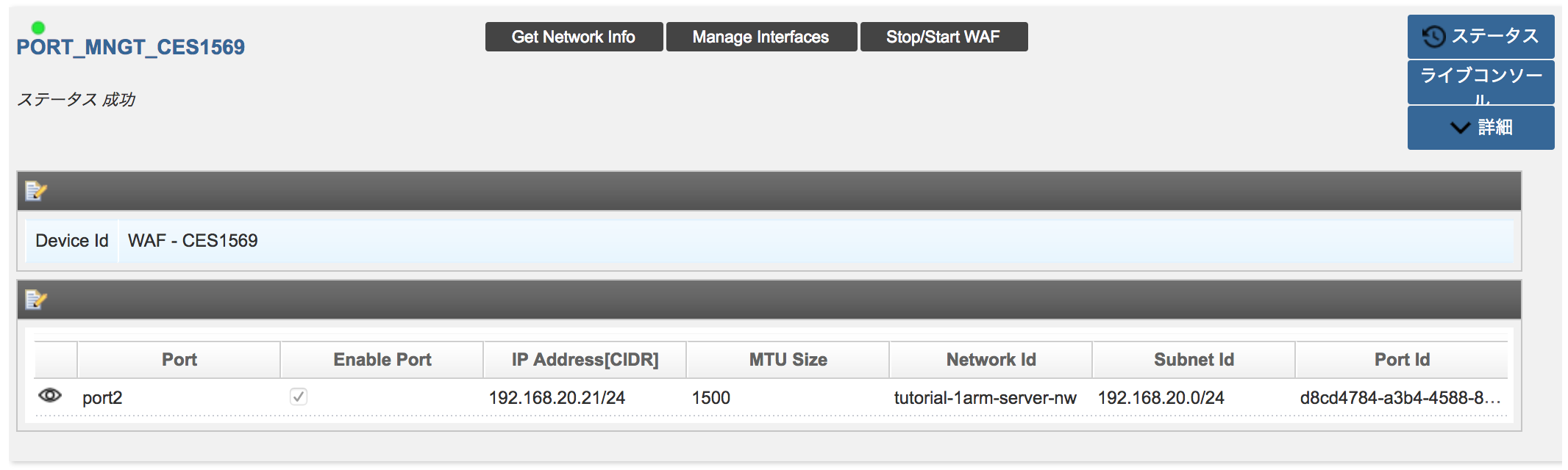 M-WAF-01およびM-WAF-02のステータスが正常(緑) であることを確認します。