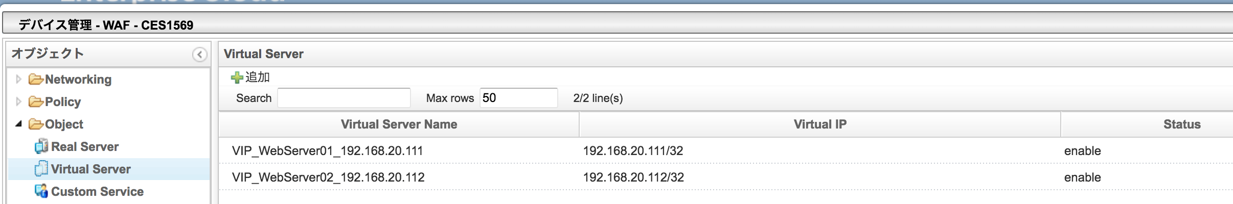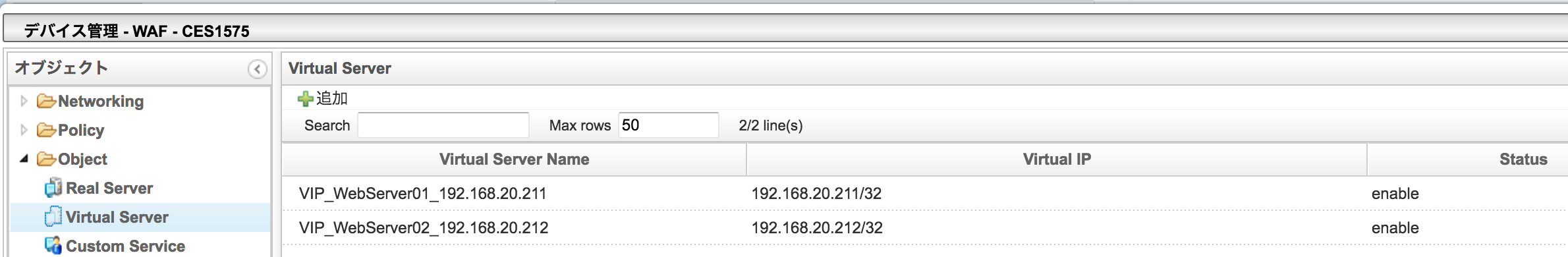 ロードバランサーのバーチャルサーバーの状態