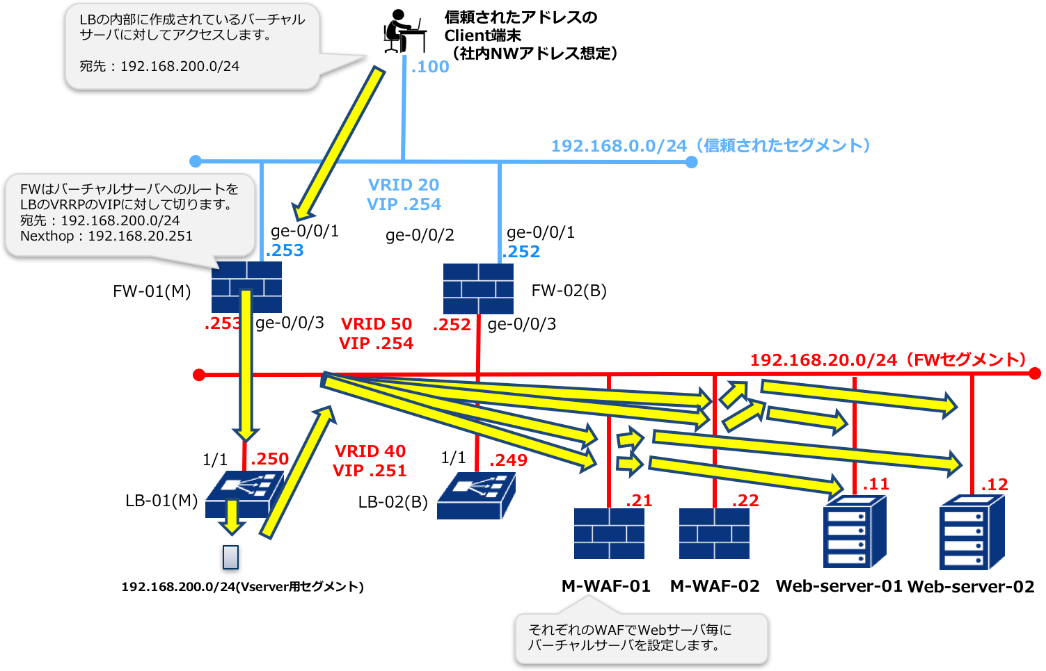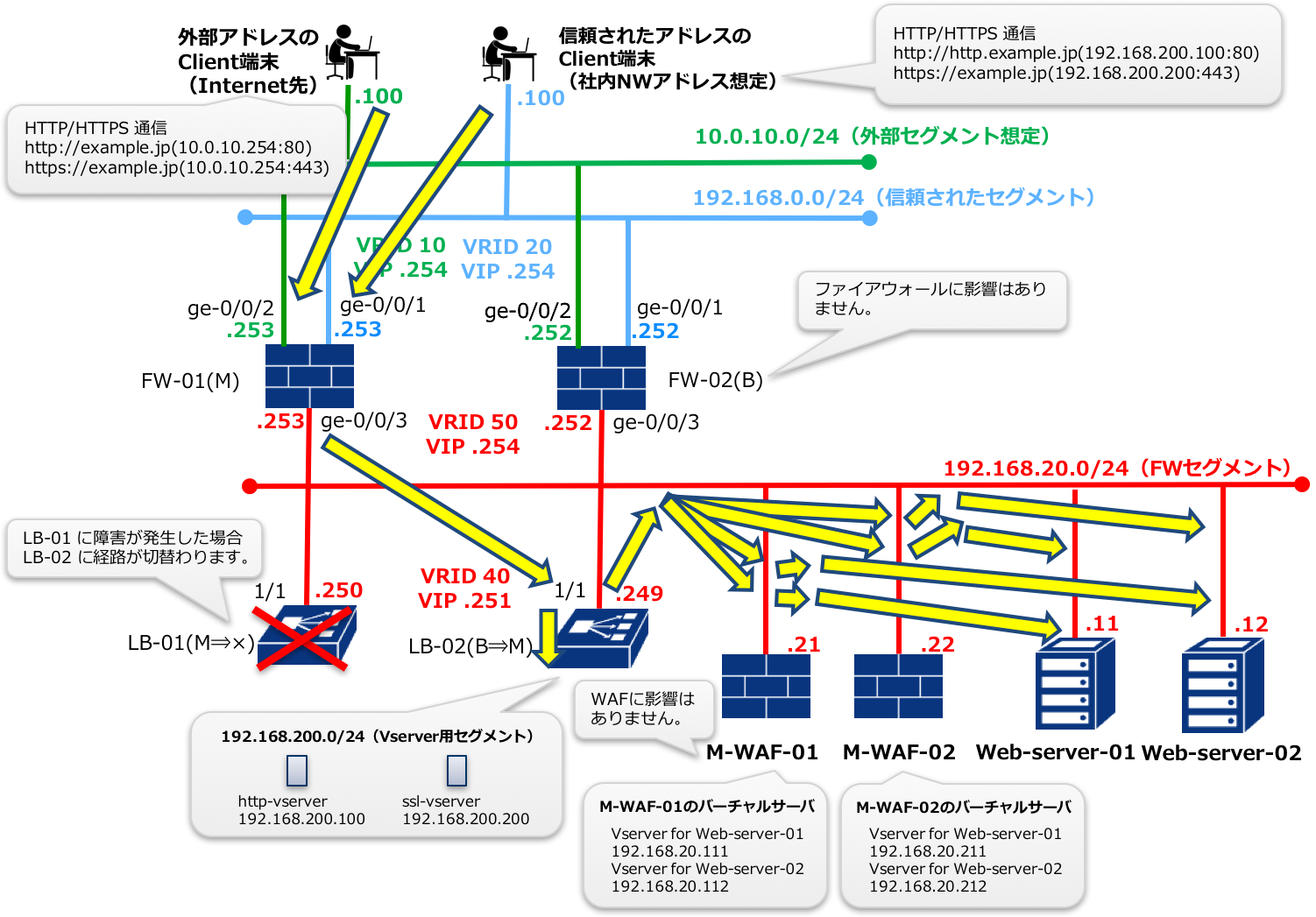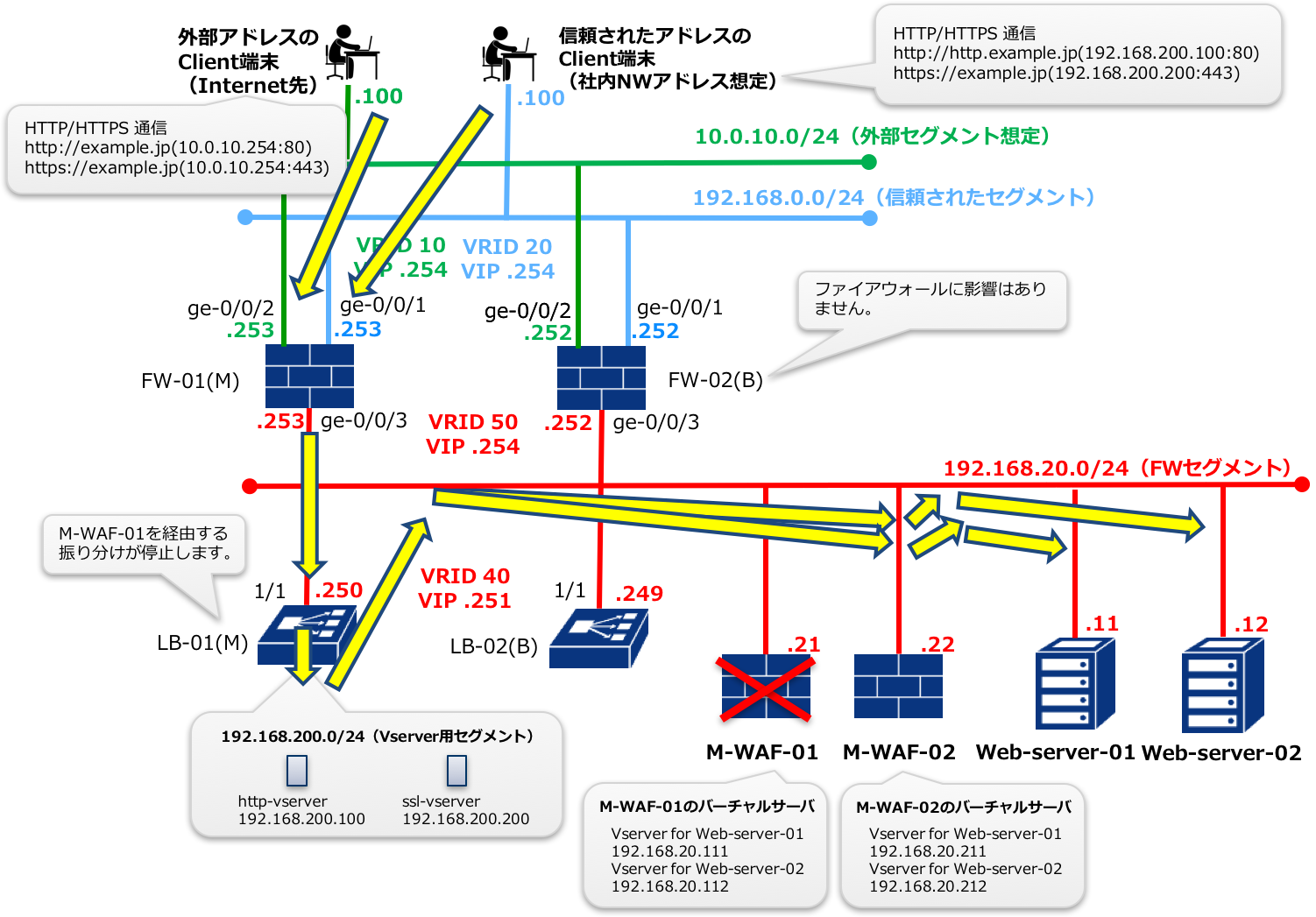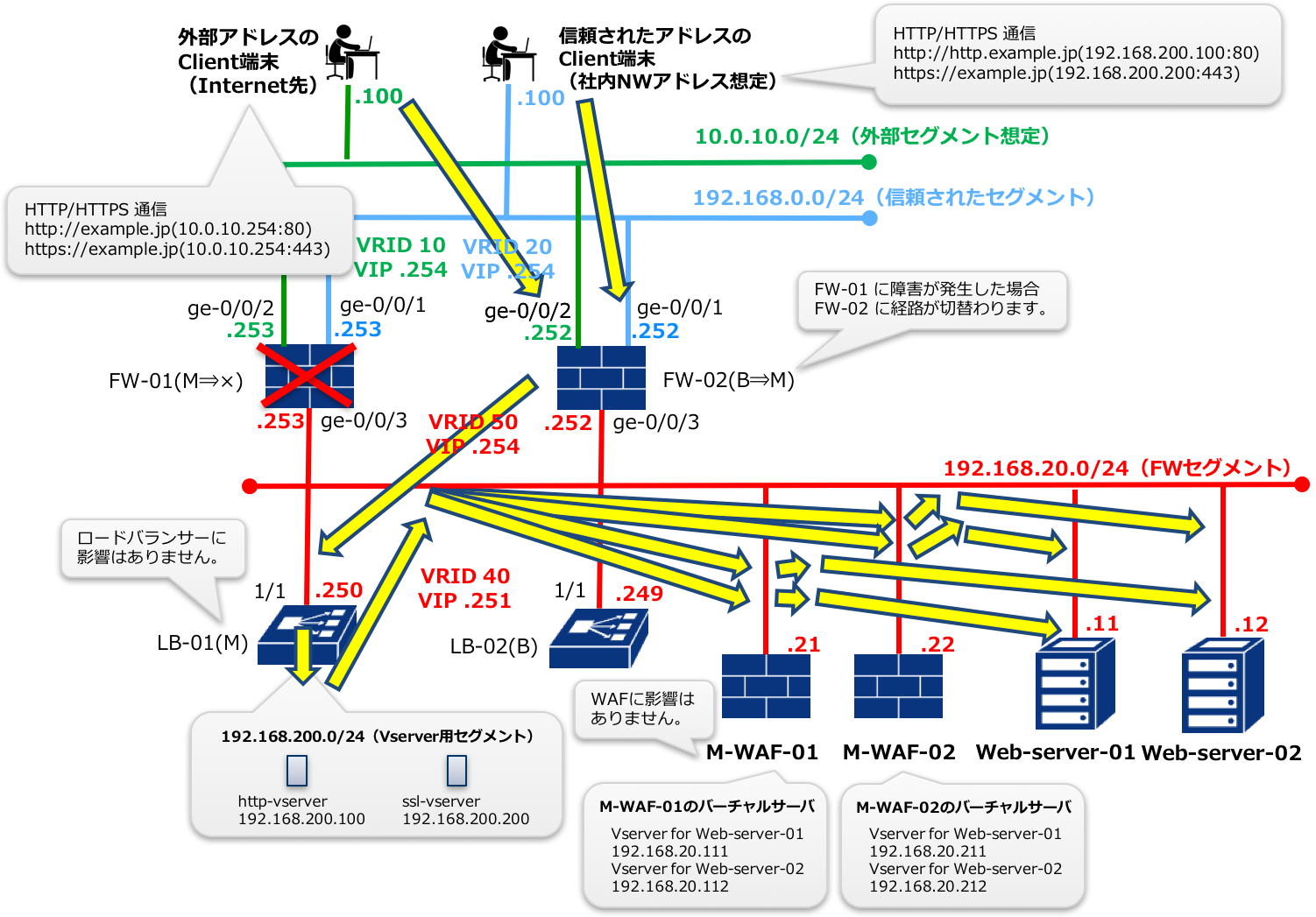 FW-01の障害発生時はFW-02に経路が切り替わります。