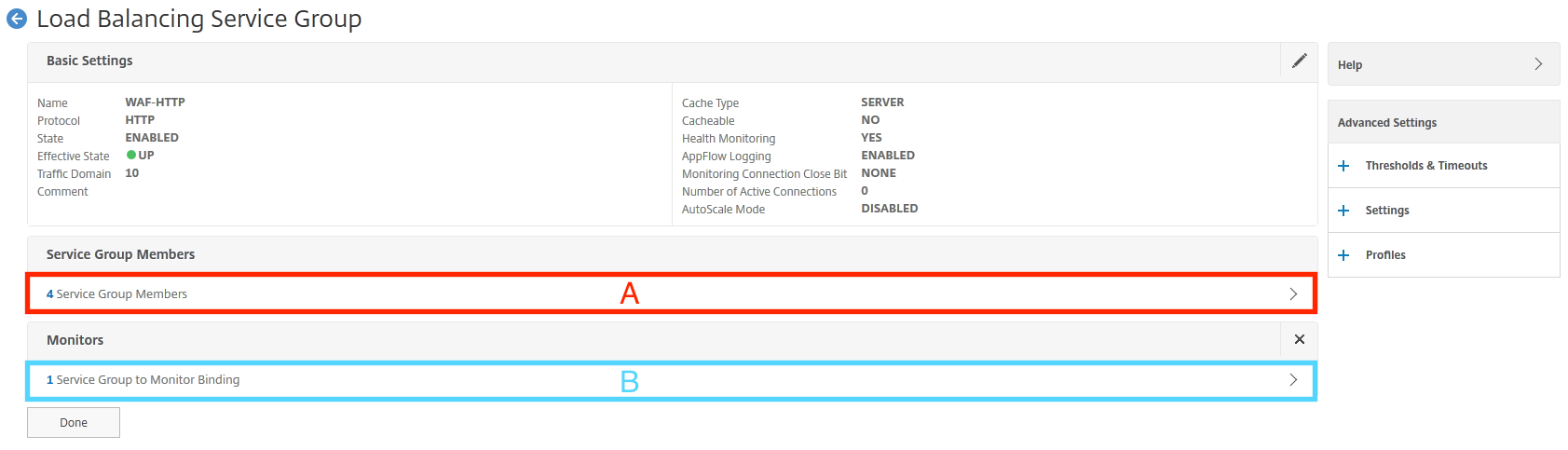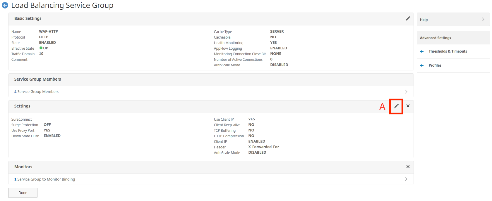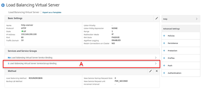 メニューの[Traffic Management]-[Load Balancing]-[Virtual Servers]を選択し、右メニューに表示された登録済みのサービスグループ名[ssl-vserver]をダブルクリックして設定を確認します。