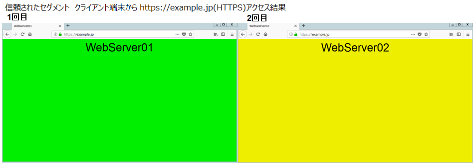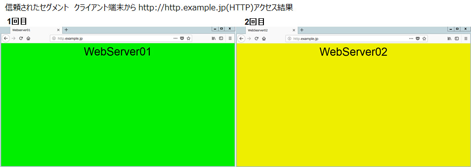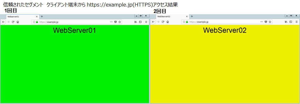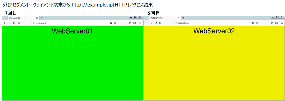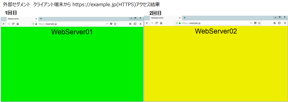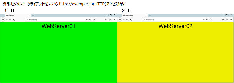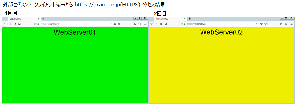 LB障害発生時でも問題なく通信できることを確認するため外部セグメントのClient端末からHTTP通信・HTTPS通信を行います。