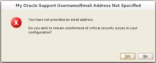 1.[I wish to receive security updates via My Oracle Support.]のチェックを外します。