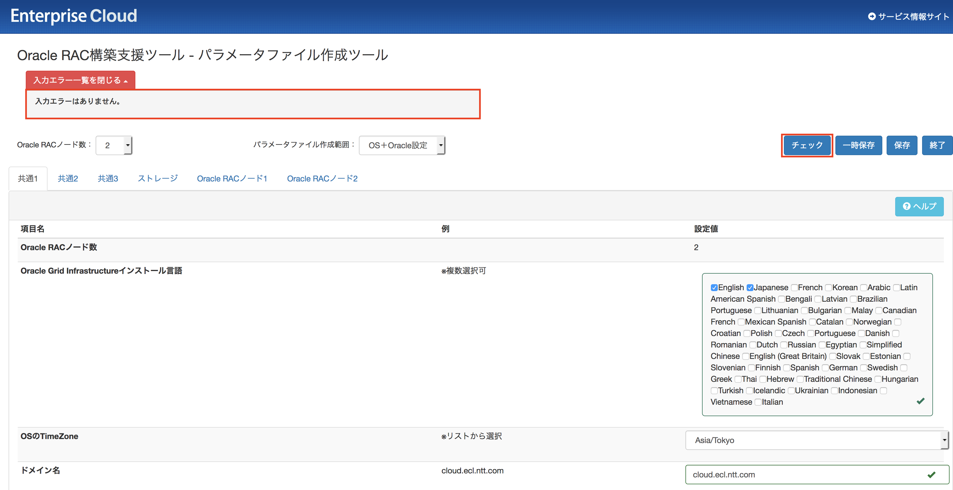 全ての項目を入力後、[チェック]ボタンをクリックし、入力に誤りがないことを確認します。