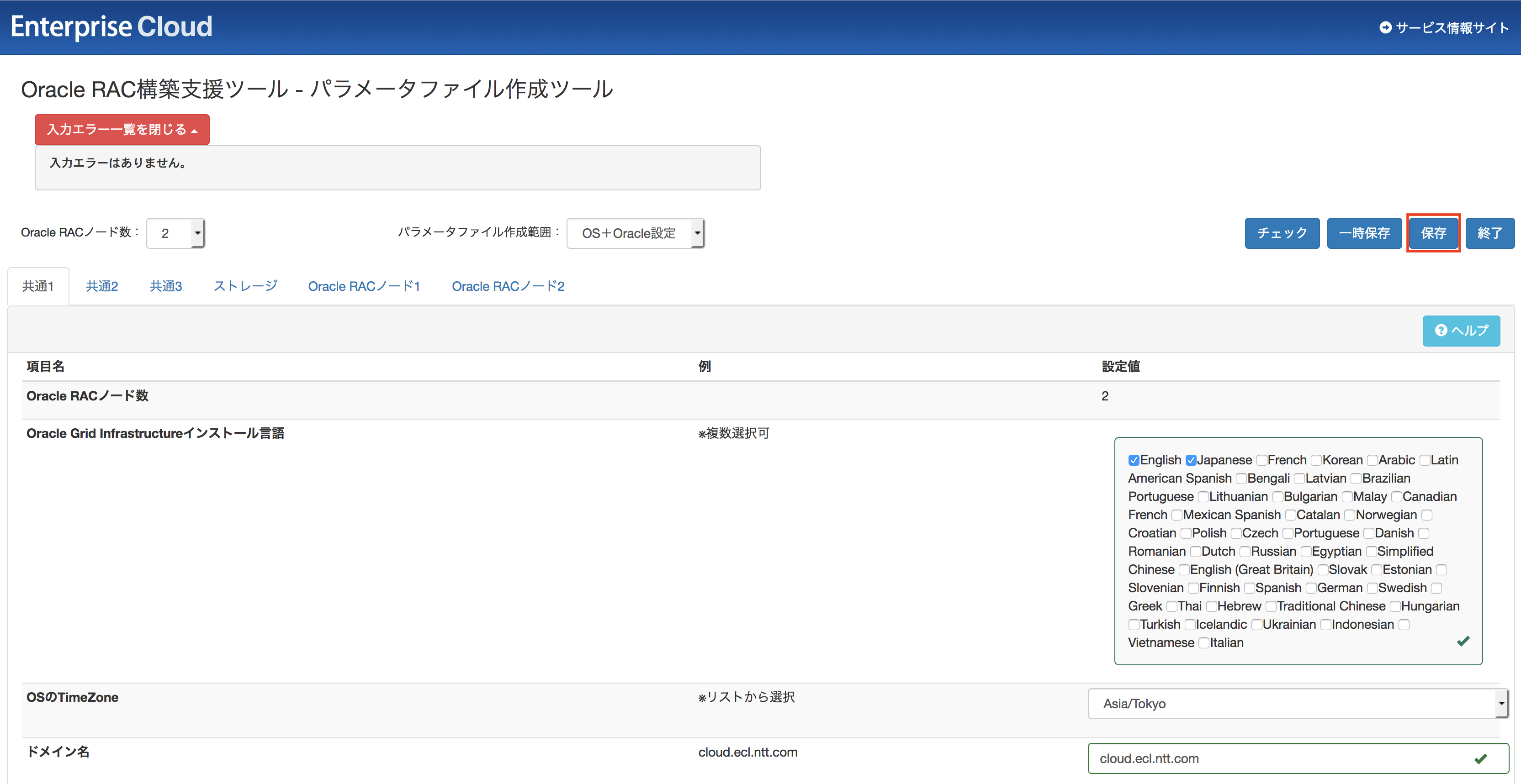 チェック後、[保存]ボタンをクリックし、パラメータファイルを保存します。