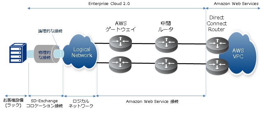 SD-Exchange クラウド/サーバー SD-Exchange Amazon Web Services接続を利用して、申し込みおよびSDPFのロジカルネットワークとの接続を行ってください。(事前にお客様にてAmazon Web Services VPCのAWSアカウントIDの取得が必要です)