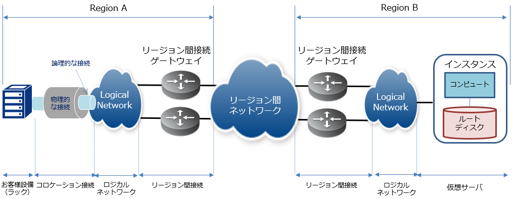 コロケーションラックを利用するリージョン(Region A)において、接続したいコロケーションラックとSDPFのロジカルネットワークを、コロケーション接続を利用して接続してください。