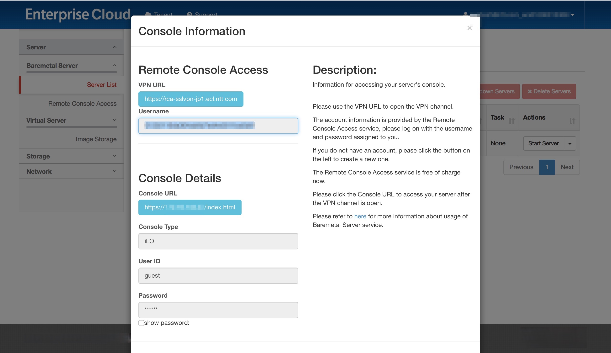 ベアメタルサーバーのiLOからESXiのコンソールへの接続¶