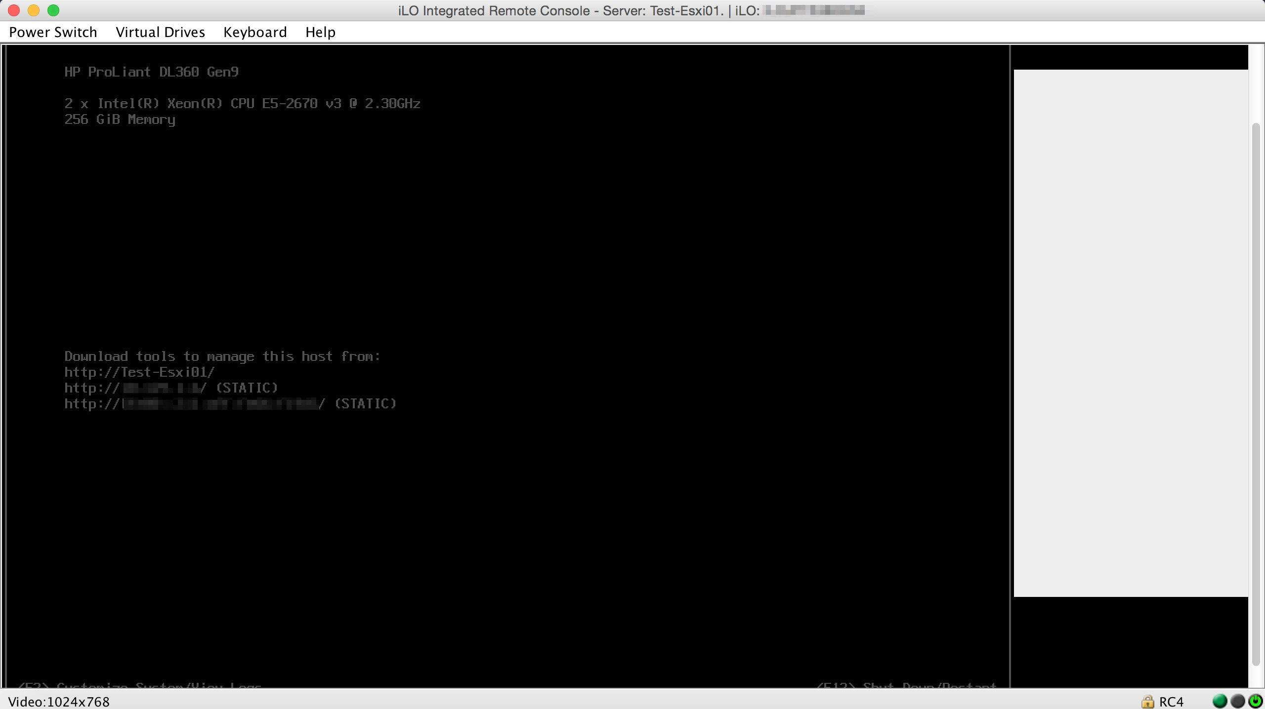 ベアメタルリモートコンソールアクセスにより、ベアメタルサーバーのiLOにログインし、ESXiのコンソール画面を立ち上げます。