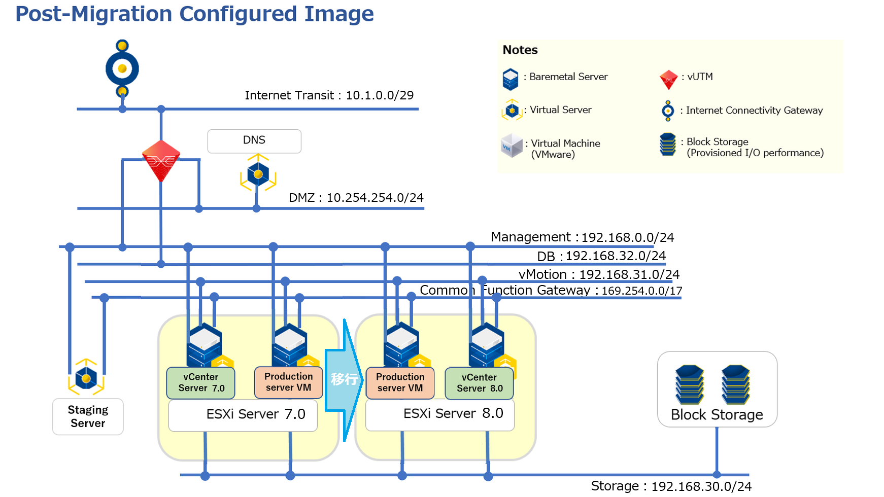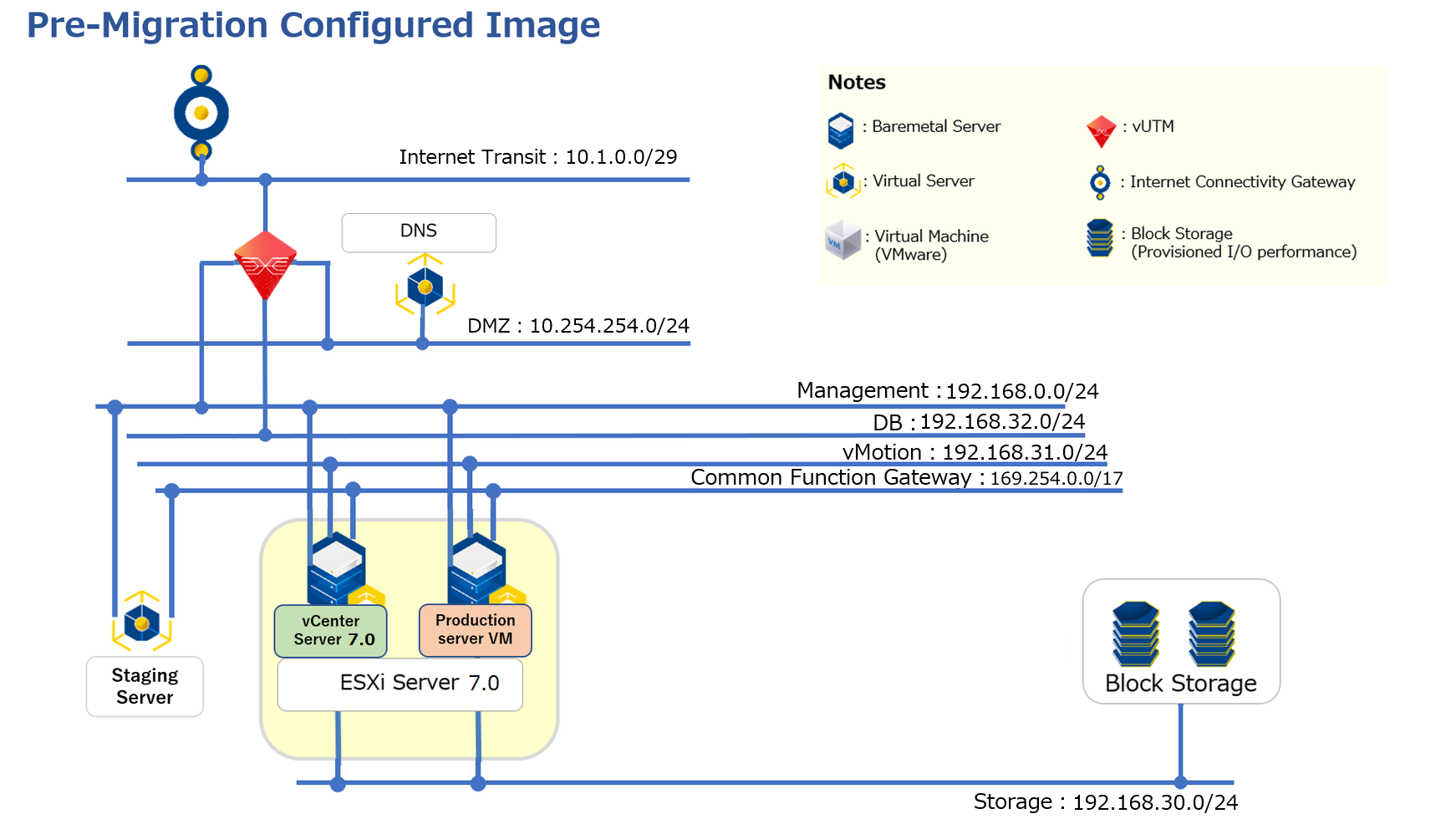 本項で提示する操作、構成等は一例であり、性能、効用、完全性等を保証するものではありません。性能、可用性、保守性など、お客さま要件に応じた設計が必要です。移行作業では、vCenter ServerやVMでシャットダウンが発生します。作業タイミングには十分ご注意ください。