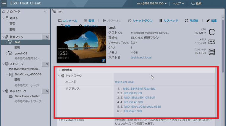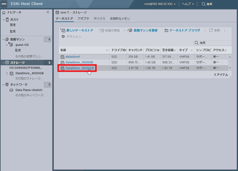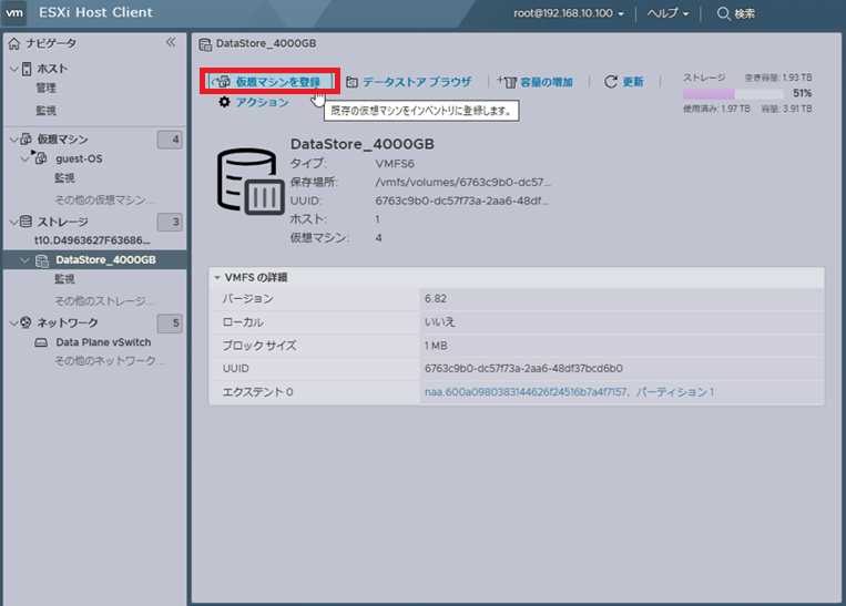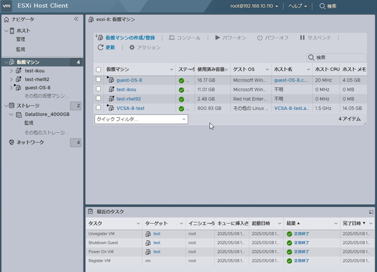 vSphere ESXi 8.0(移行先)のvSphere Host Clientにログインします。