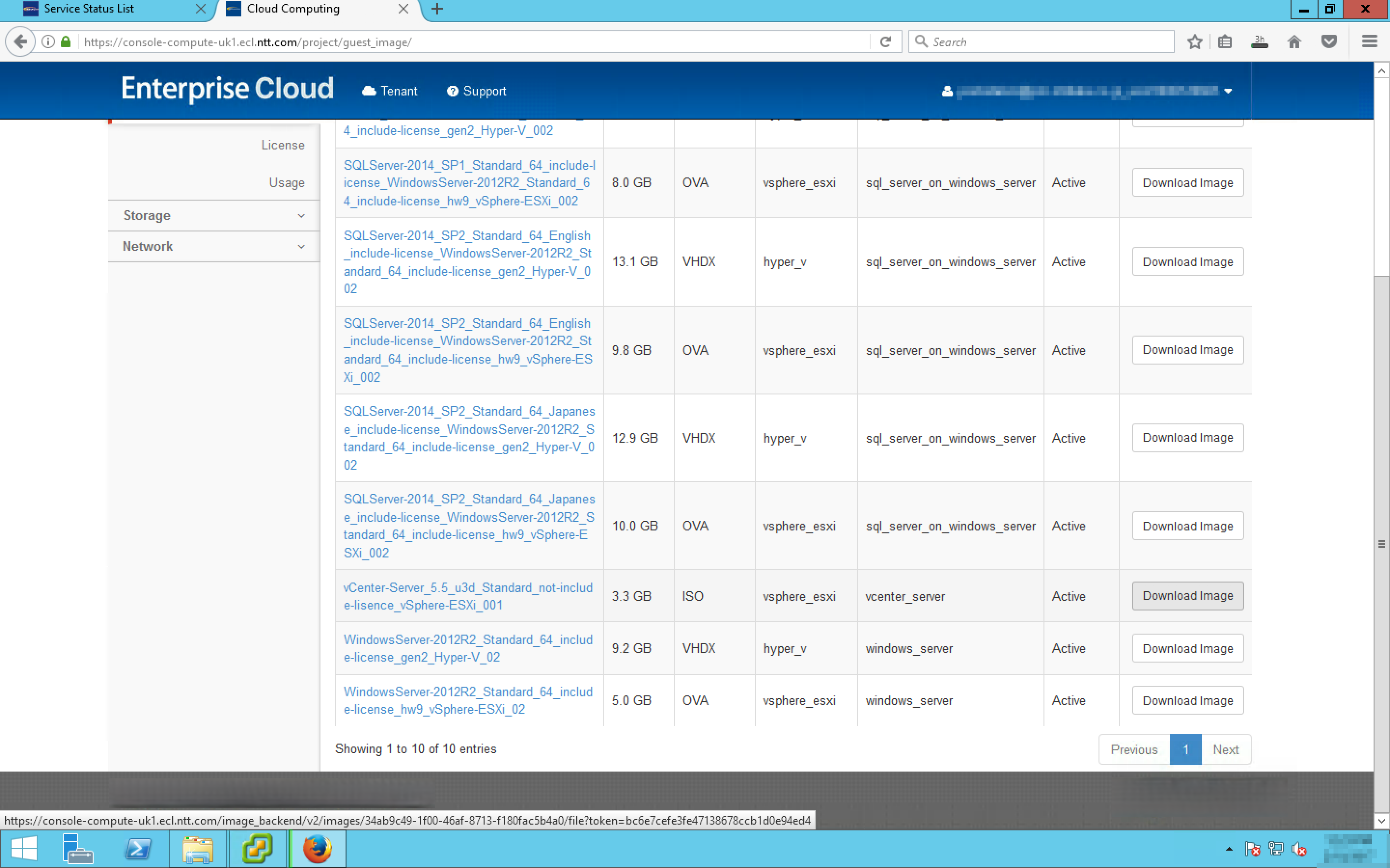 • 以下のイメージ名の右の [Download Image]をクリックします。