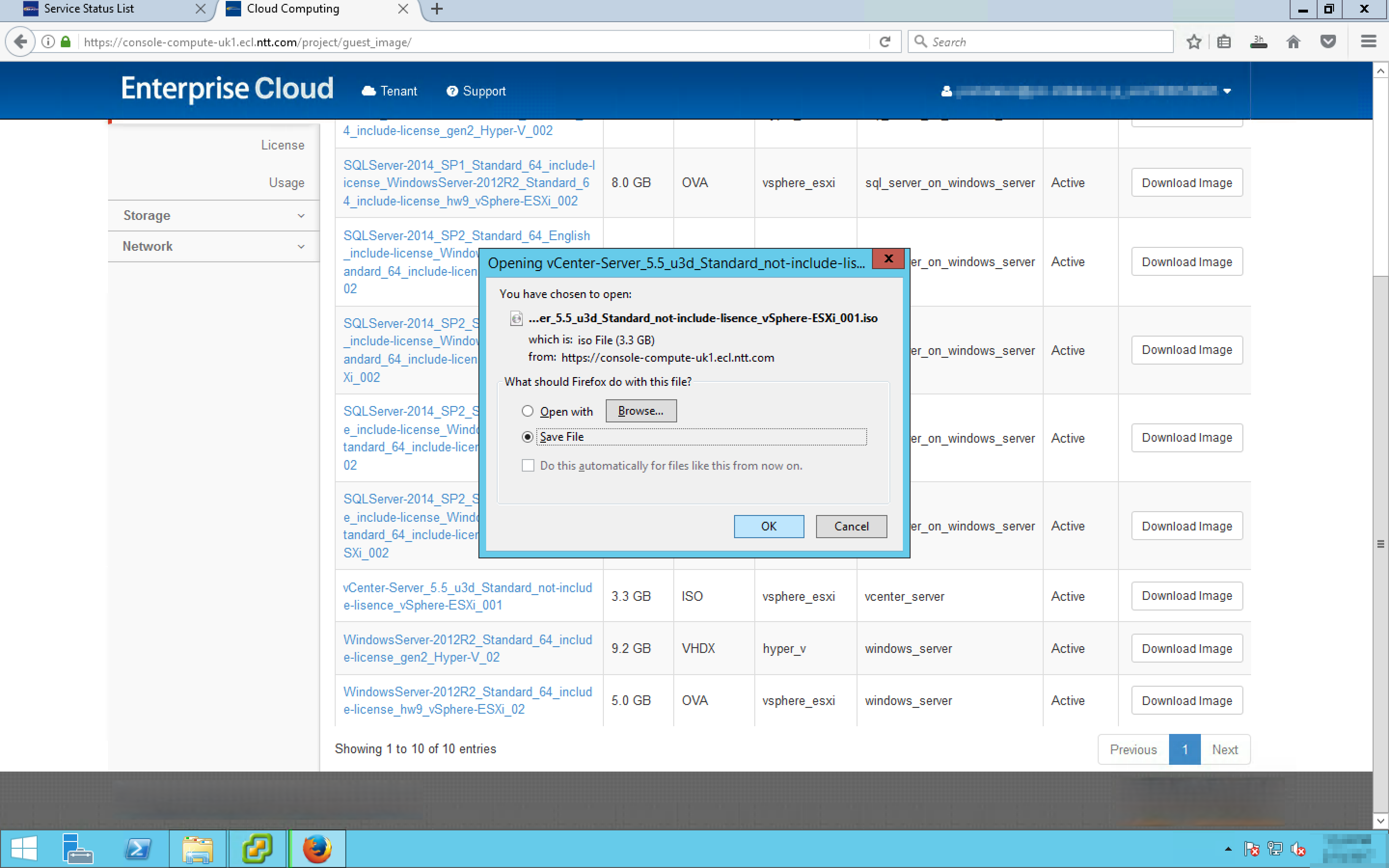 • vCenter Server のインストールをする際に、その途中でライセンスキーの入力を求められるため、あらかじめクラウドコントロールパネルのゲストイメージメニューにて発行しておきます。
