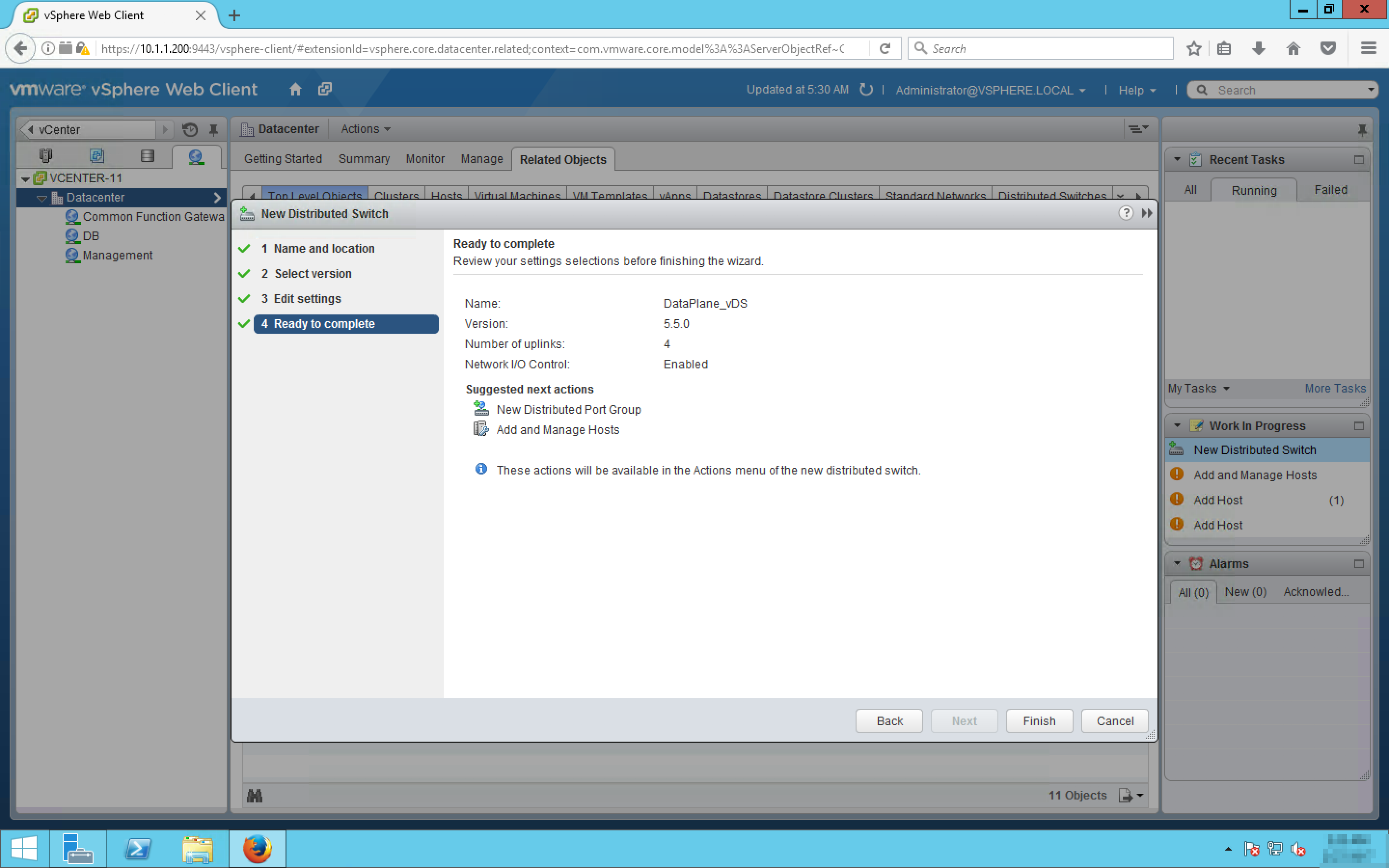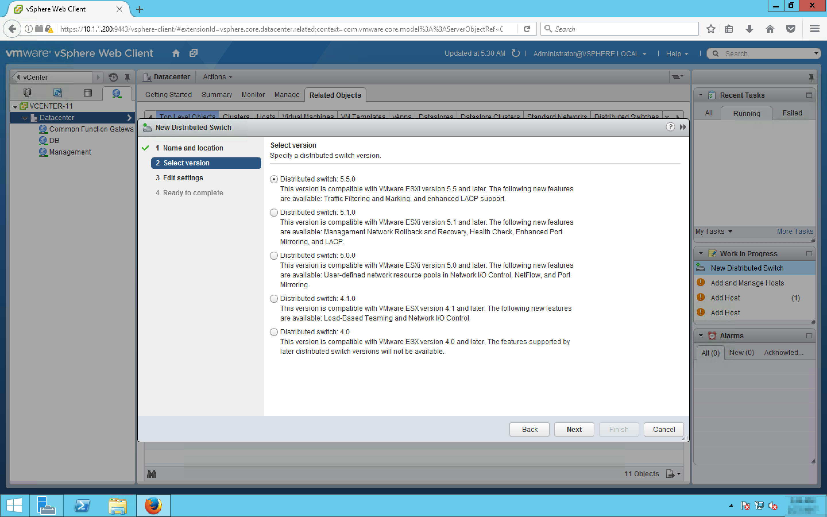 [2 Select version]にて、[Distributed switch: 5.5.0]を選択し、[Next]をクリックします。