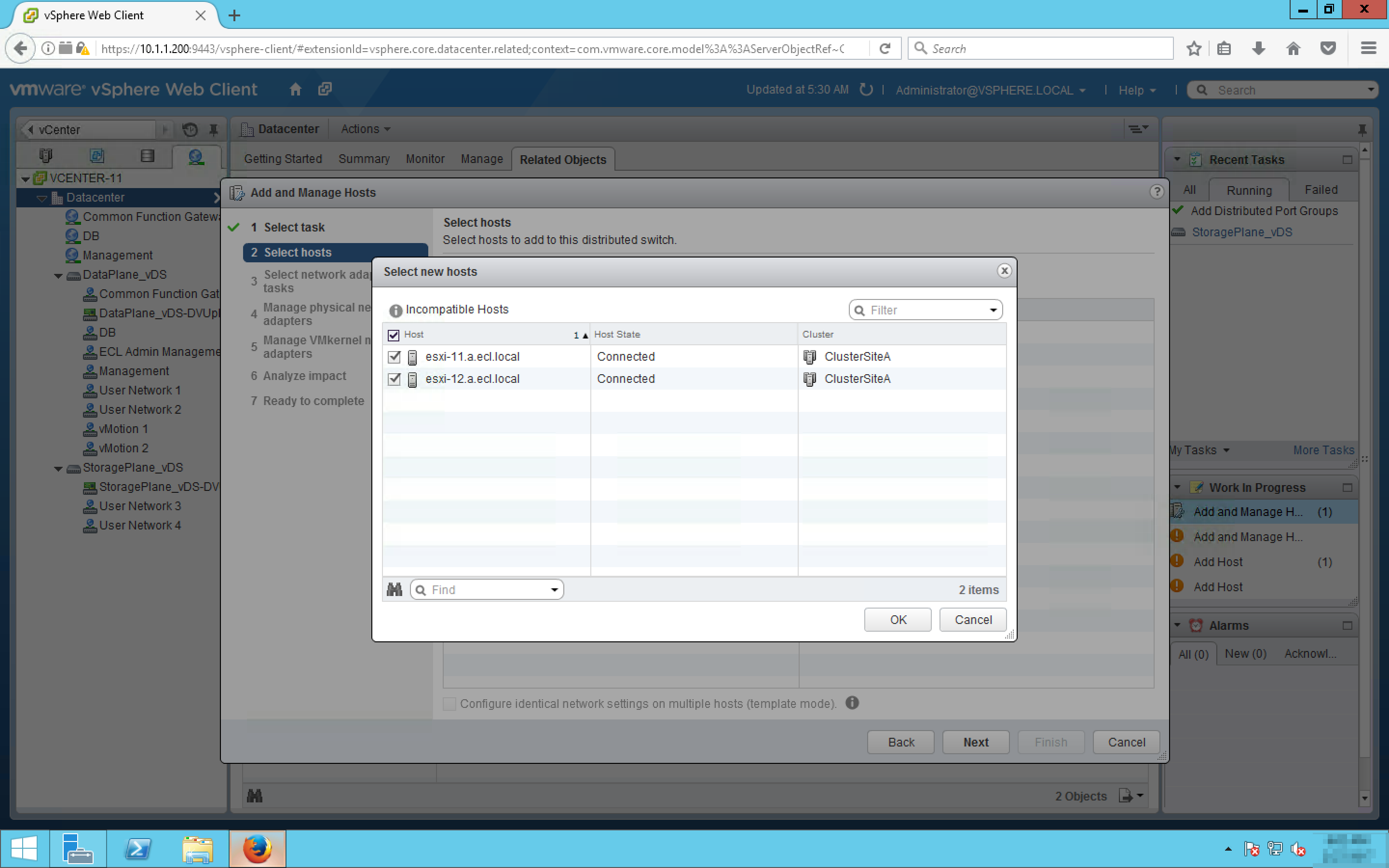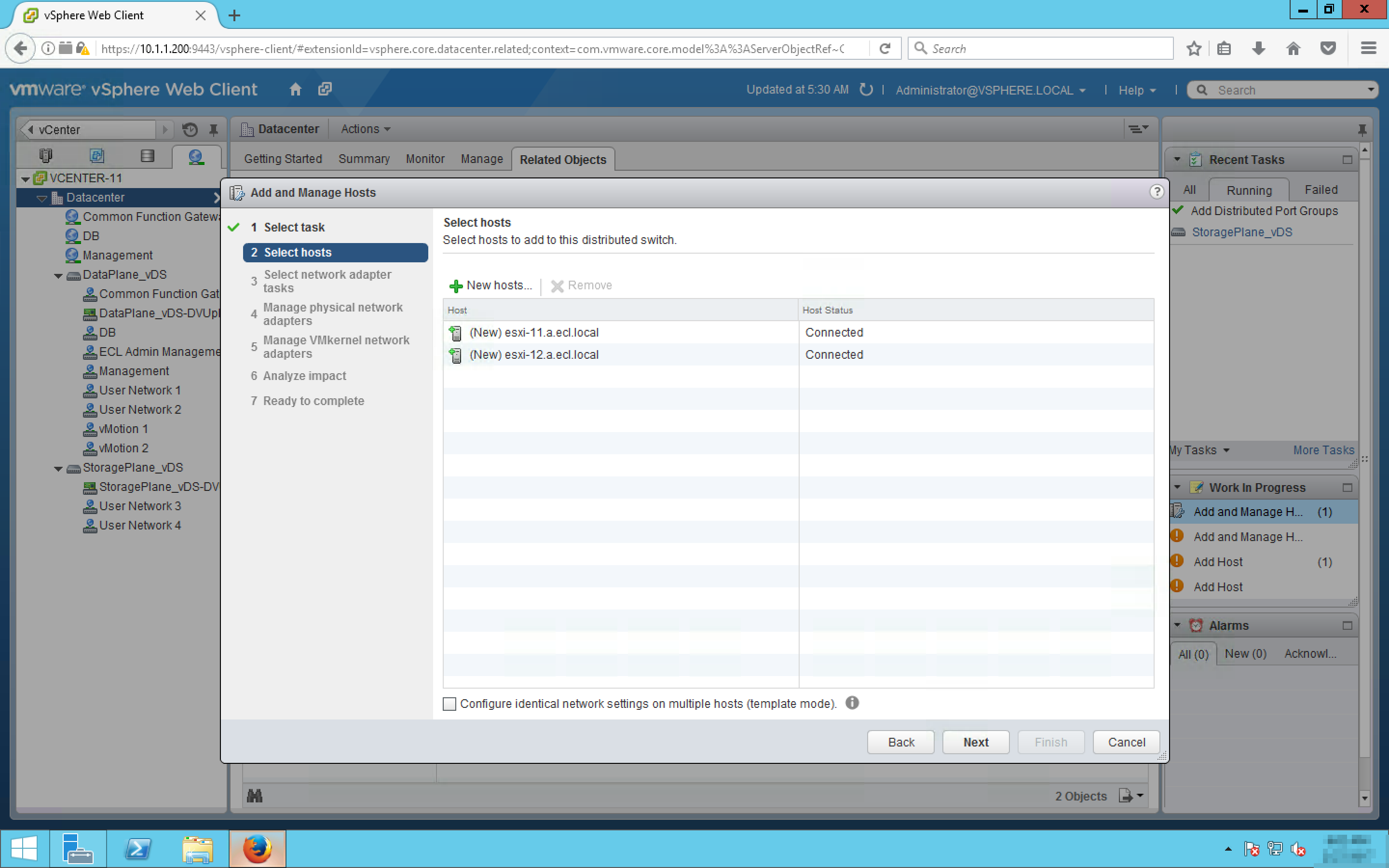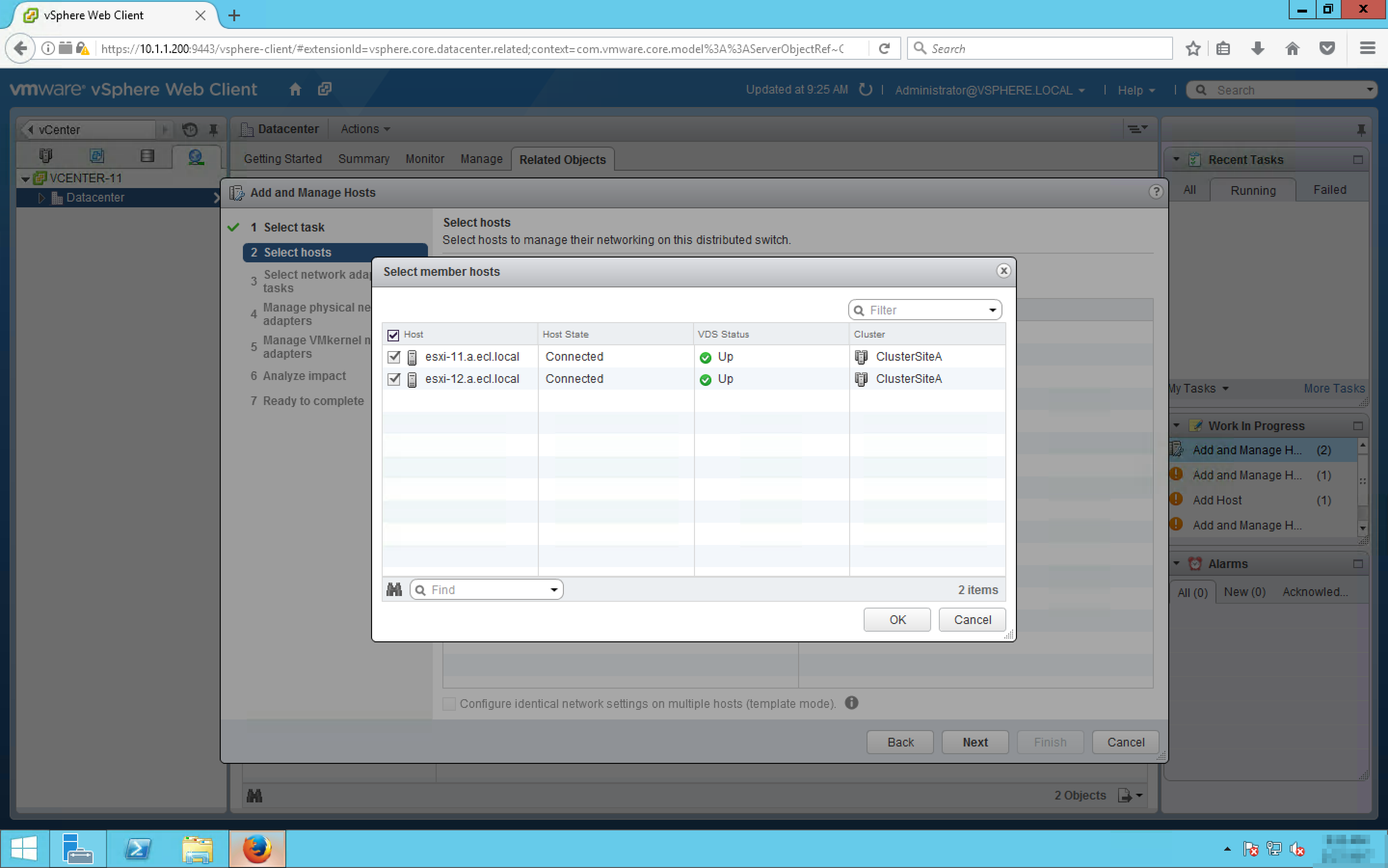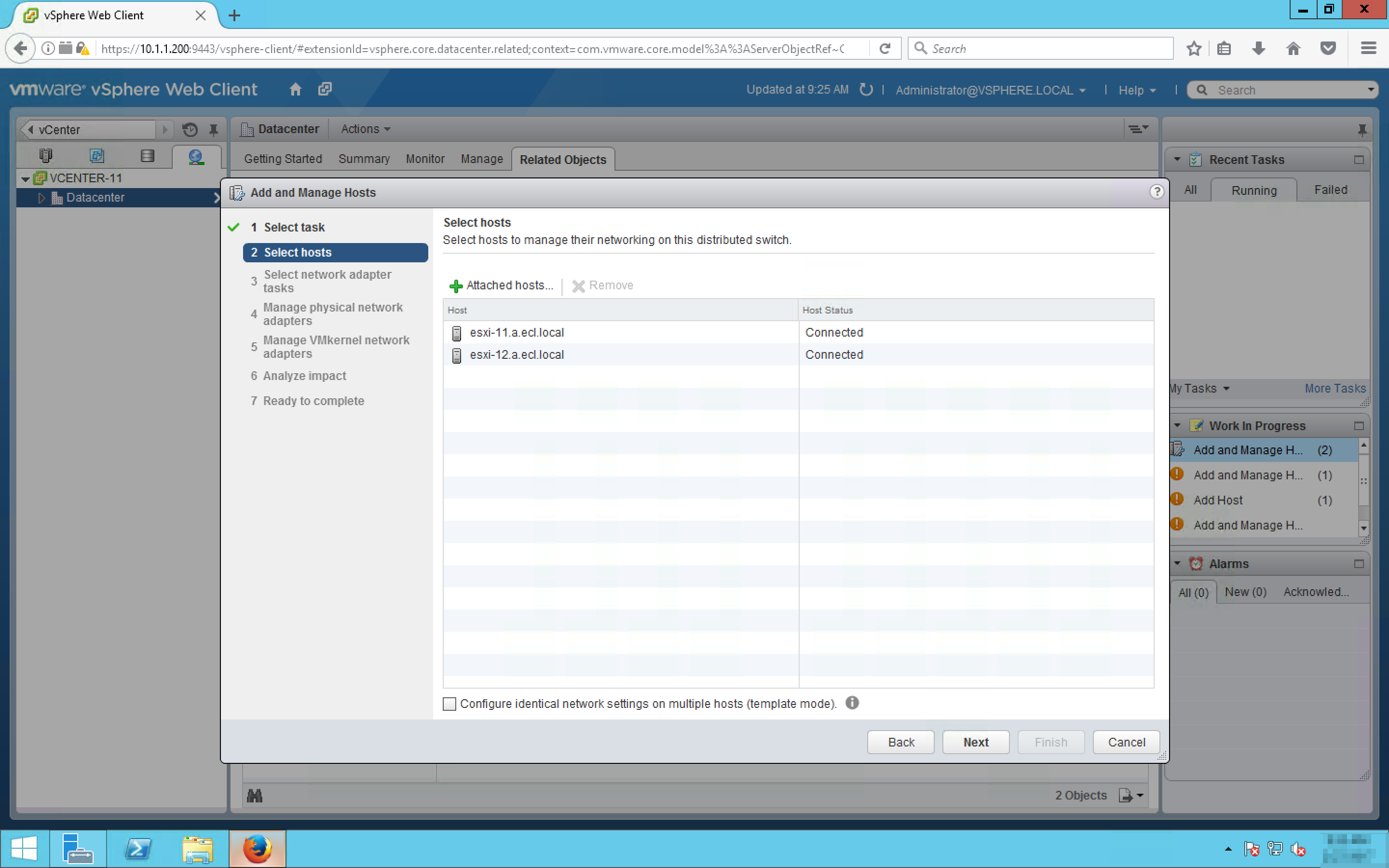[2 Select hosts]にて、ESXiホストが追加されていることを確認し、[Next]をクリックします。