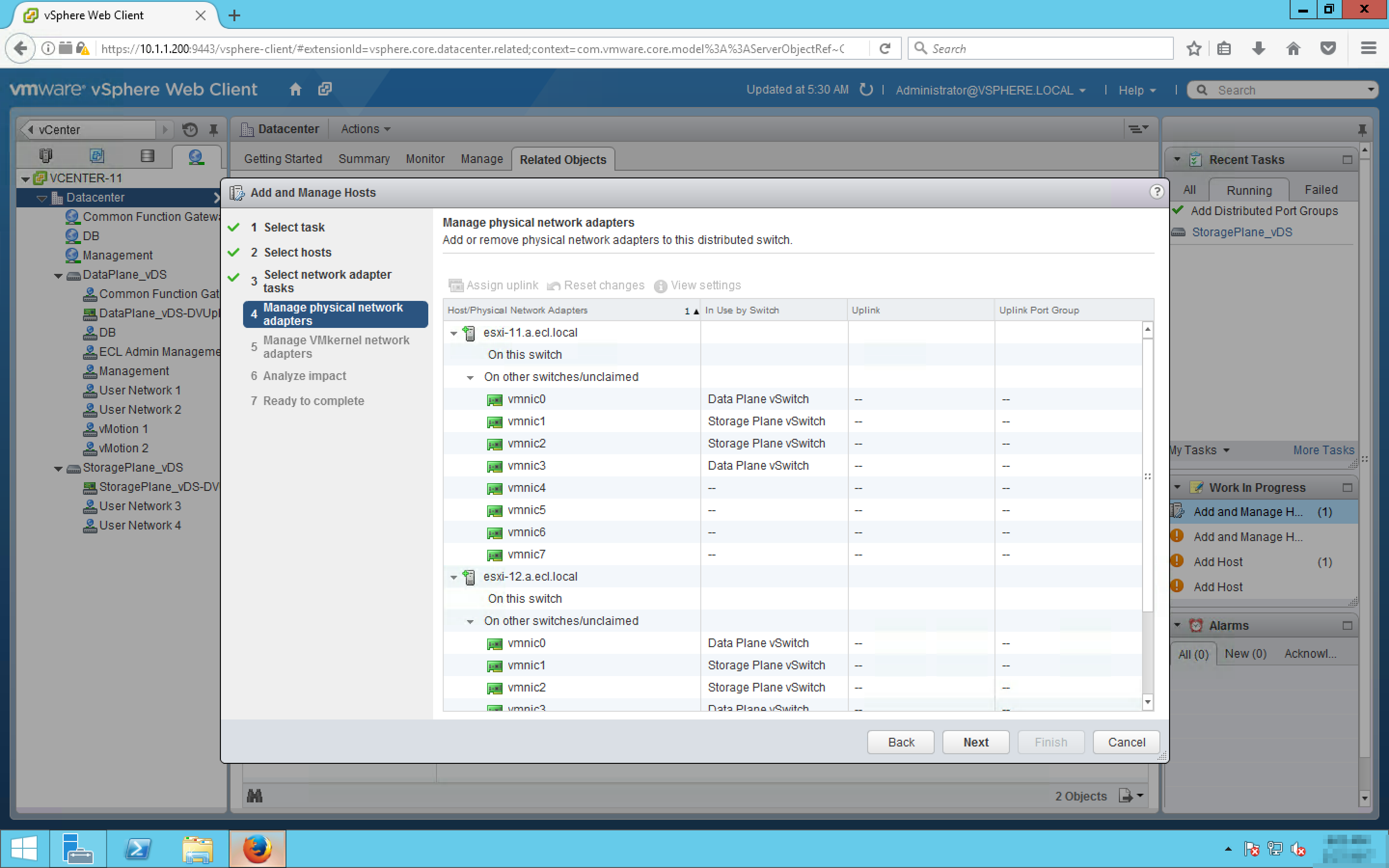 vSphereマネージメント用(データプレーン)/vSphere仮想マシン通信用(データプレーン)/vSphere vMotion用(データプレーン)/ストレージ接続用(ストレージプレーン)の合計4IDの作成完了 |
