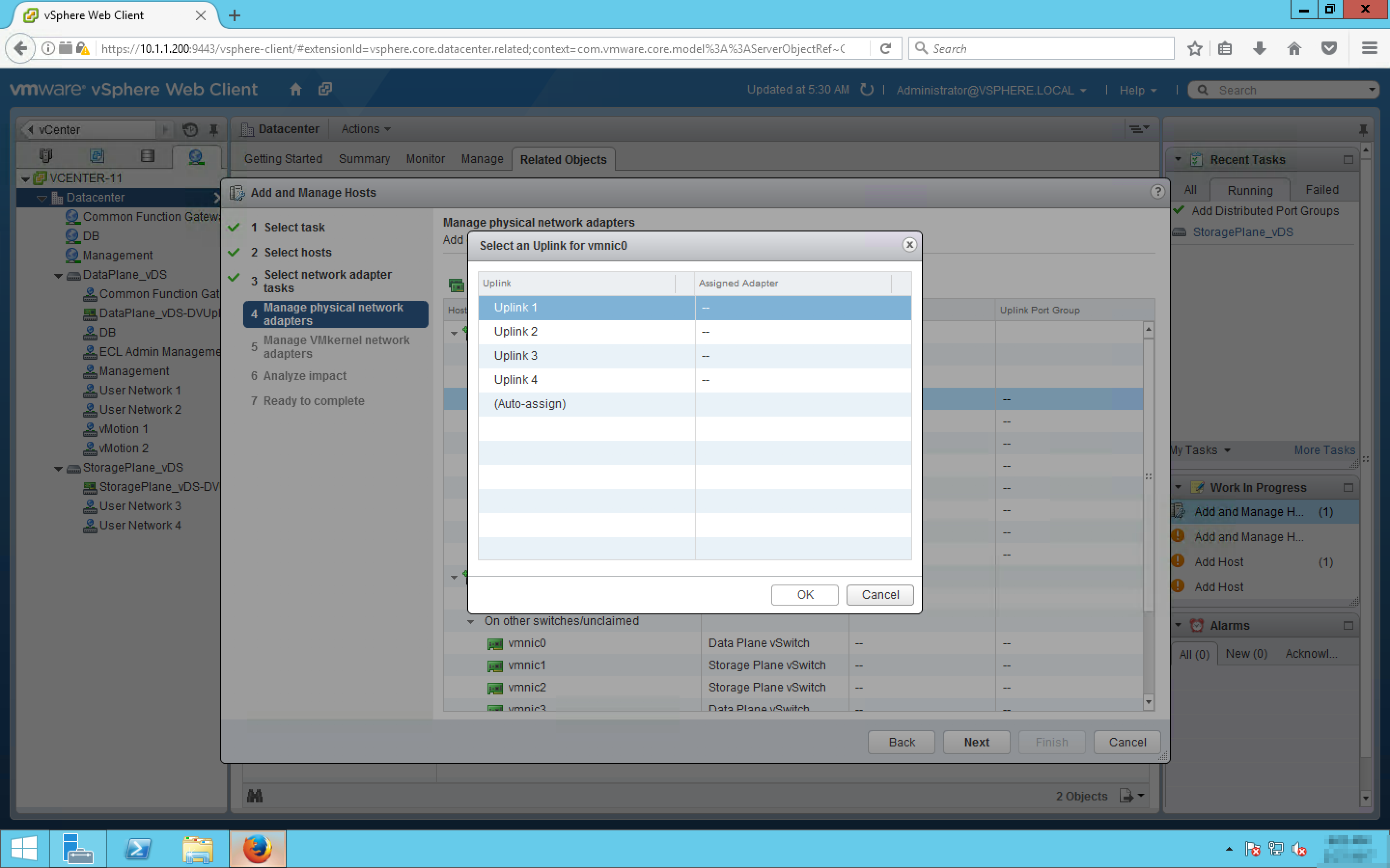 [4 Manage physical network adapters]にて、[vmnic]を選択し、[Assign uplink]をクリックします。